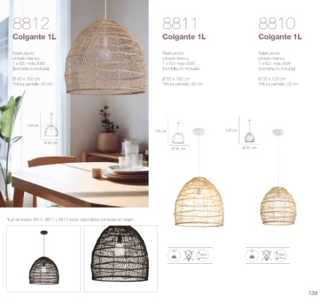 *Las lámparas 8810, 8811 y 8812 están disponibles pintadas en negro