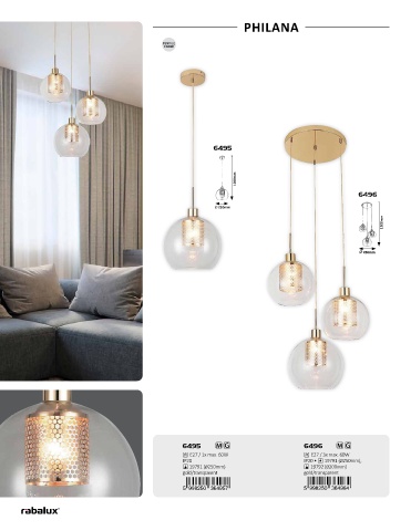 PHILANA TEXTILE CABLE 6495 1200mm 6496 250mm 1200mm 450mm 6495 M G 6496 M G I E27 / 1x max. 60W I E27 / 3x max. 60W IP20 IP20 • T 19791 ( 250mm), G 19791 ( 250mm) G 19792 ( 200mm) gold/transparent gold/transparent