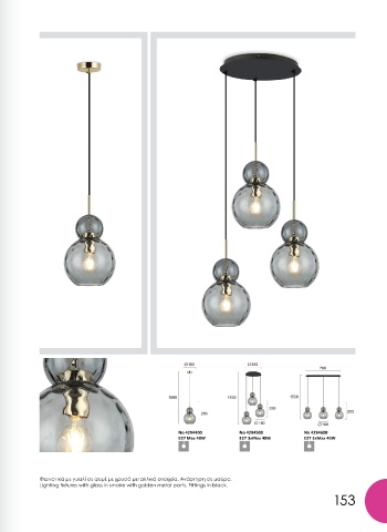 Φωτιστικά με γυαλί σε φυμέ με χρυσά μεταλλικά στοιχεία. Ανάρτηση σε μαύρο.