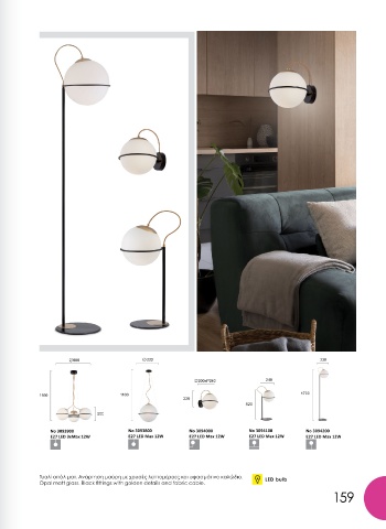 Opal matt glass. Black fittings with golden details and fabric cable.