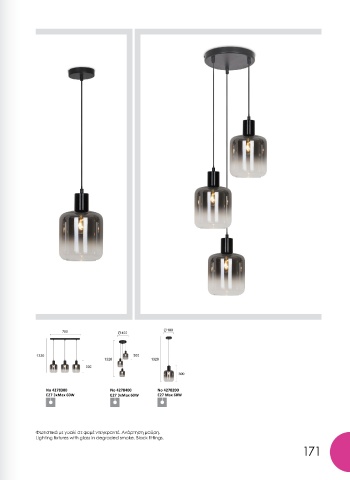 Φωτιστικά με γυαλί σε φυμέ ντεγκραντέ. Ανάρτηση μαύρη.