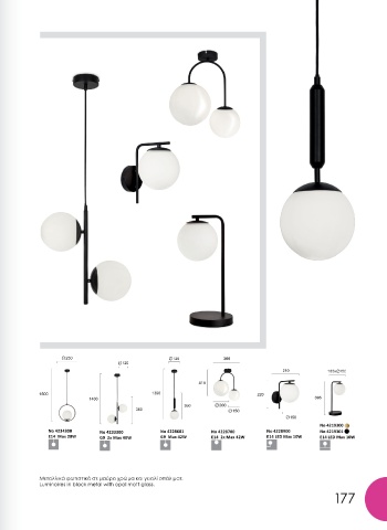 Μεταλλικά φωτιστικά σε μαύρο χρώμα και γυαλί οπάλ ματ.