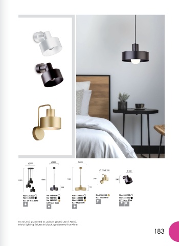 Μεταλλικά φωτιστικά σε μαύρο, χρυσό ματ ή λευκό.