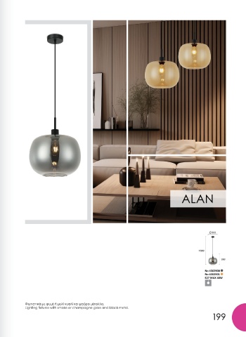 Lighting fixtures in smoke or amber glass. Black fittings. Lighting fixtures with smoke or champagne glass and black metal.