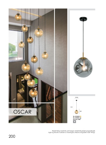 Lighting fixtures in amber or smoke glass. Black and golden matt fittings. Lighting fixtures with glass in smoke or amber color. Fittings in black.