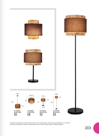 Bamboo and fabric shades in natural and brown colours. Metal base or fittings in black.