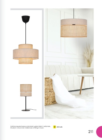 Καπέλα σε φυσικό χρώμα. Μεταλλική, μαύρη βάση ή ανάρτηση. LED bulb