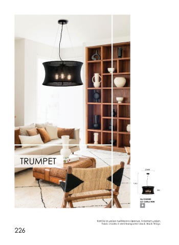 Fabric shades in semi-transparent black. Black fittings. PVC lighting fixtures. Black fittings.