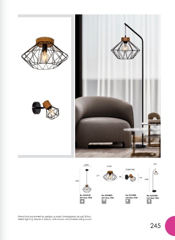 Μεταλλικά φωτιστικά σε μαύρο με καφέ λεπτομέρειες σε εφέ ξύλου.