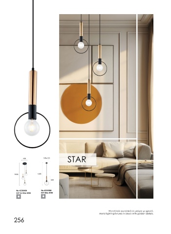 Μεταλλικά φωτιστικά σε μαύρο με χρυσό. Φωτιστικά σε μαύρο και μουσταρδί υφασμάτινο καπέλο. Ανάρτηση μαύρη.