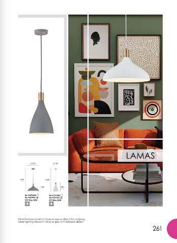 Μεταλλικά φωτιστικά σε γκρι. Μεταλλικά φωτιστικά σε λευκό ή γκρι με οξυντέ λεπτομέρειες.