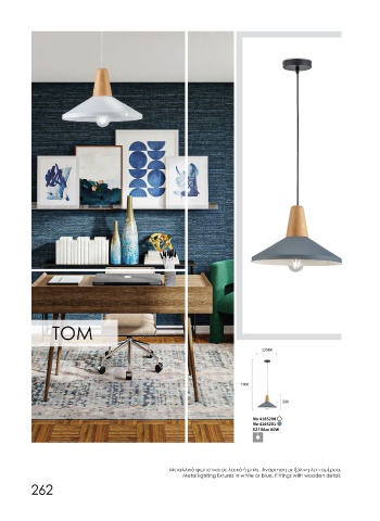 Μεταλλικά φωτιστικά σε λευκό ή μπλε. Ανάρτηση με ξύλινη λεπτομέρεια. Μεταλλικά φωτιστικά σε λευκό ή μαύρο. Ανάρτηση με ξύλινη λεπτομέρεια.