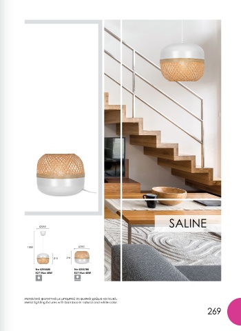 Μεταλλικό φωτιστικό σε λευκό με ξύλινη λεπτομέρεια. Μεταλλικά φωτιστικά με μπαμπού σε φυσικό χρώμα και λευκό.
