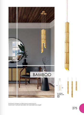 Metal lighting fixtures in black or gold matt. Metal tube in bamboo decoration with adjustable body height.