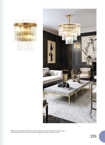 Μεταλλικά φωτιστικά με διάφανο γυαλί. Ανάρτηση και λεπτομέρειες σε χρυσό ματ.