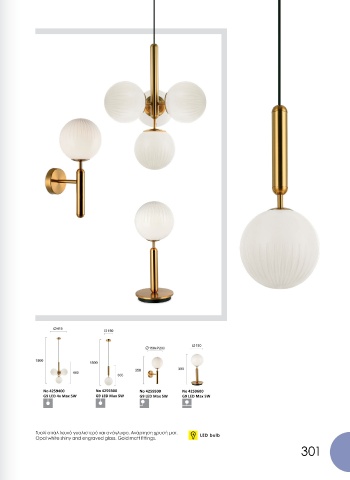 Γυαλί οπάλ λευκό γυαλιστερό και ανάγλυφο. Ανάρτηση χρυσή ματ.    LED bulb