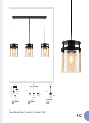 Lighting fixtures with glass in amber color. Fittings in black metal.