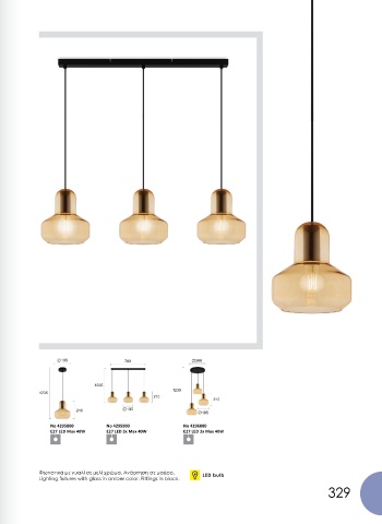 Φωτιστικά με γυαλί σε μελί χρώμα. Ανάρτηση σε μαύρο. LED bulb