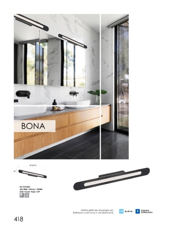 Απλίκα μπάνιου σε μαύρο ματ. LED Built-In IP Ingress Απλίκες μπάνιου σε χρώμιο και μαύρο ματ. LED Built-In IP Ingress