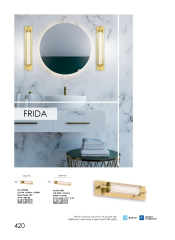 Απλίκα μπάνιου με γυαλί σε χρυσό ματ. LED Built-In IP Ingress Απλίκες μπάνιου με γυαλί σε νίκελ ματ. LED Built-In IP Ingress