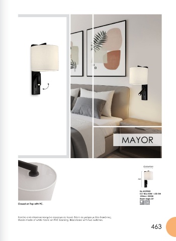 Wall light with white glass and black base with two switches. Opal white glass. Black base with switch. Shade made of white fabric on PVC backing. Black base with two switches.