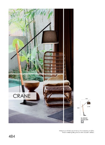 Mαύρο μεταλλικό φωτιστικό με λεπτομέρειες σε ξύλο. Μαύρο πλαστικοποιημένο καπέλο. Μεταλλική βάση σε μαύρο.