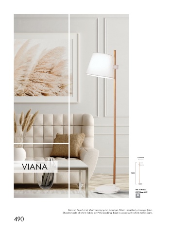 Shade made of white fabric on PVC backing. Base in wood with white metal parts. Wooden lighting fixture with black metal base and grey shade.