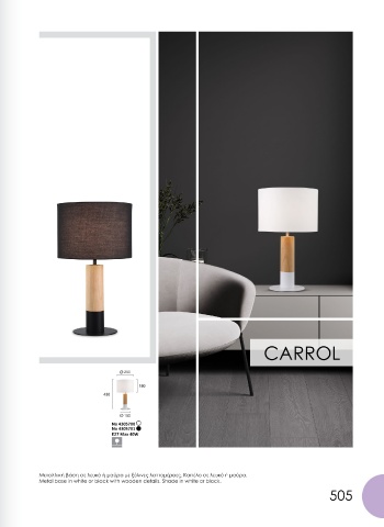 Metal base and shade in black or brown . Metal base in white or black with wooden details. Shade in white or black.