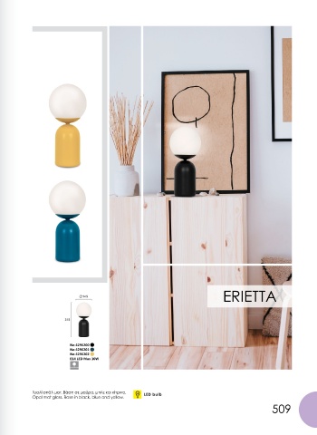 Γυαλί οπάλ ματ. Βάση σε μαύρο ή χρυσό ματ. Γυαλί οπάλ ματ. Βάση σε μαύρο, μπλε και κίτρινο. LED bulb