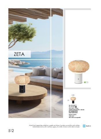Μεταλλικό πορτατίφ με battery supply, σε λεύκο ή μαύρο με καπέλο από rattan. LED Built-In Μεταλλικό πορτατίφ με battery supply, σε γκρι ή terra με βάση από μάρμαρο. LED Built-In