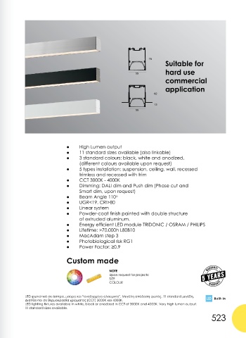 LED lighting fixtures available in white, black or anodized in CCT of 3000K and 4000K. Very high lumen output.