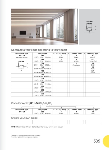 Illumination Type Size (Length) – CCT (Kelvin) – Colour & Finish – Dimming Type