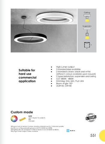 commercial ● 2 types installation: suspension and ceiling