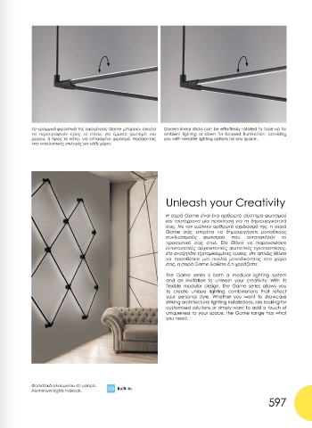 Τα γραμμικά φωτιστικά της οικογένειας Game μπορούν εύκολα Game's linear sticks can be effortlessly rotated to face up for