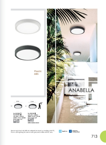 LED Built-In LED Built-In IP Ingress Φωτιστικά πλαστικά ABS σε ανθρακί και λευκό με σκιάδιο από PC. LED Built-In IP Ingress